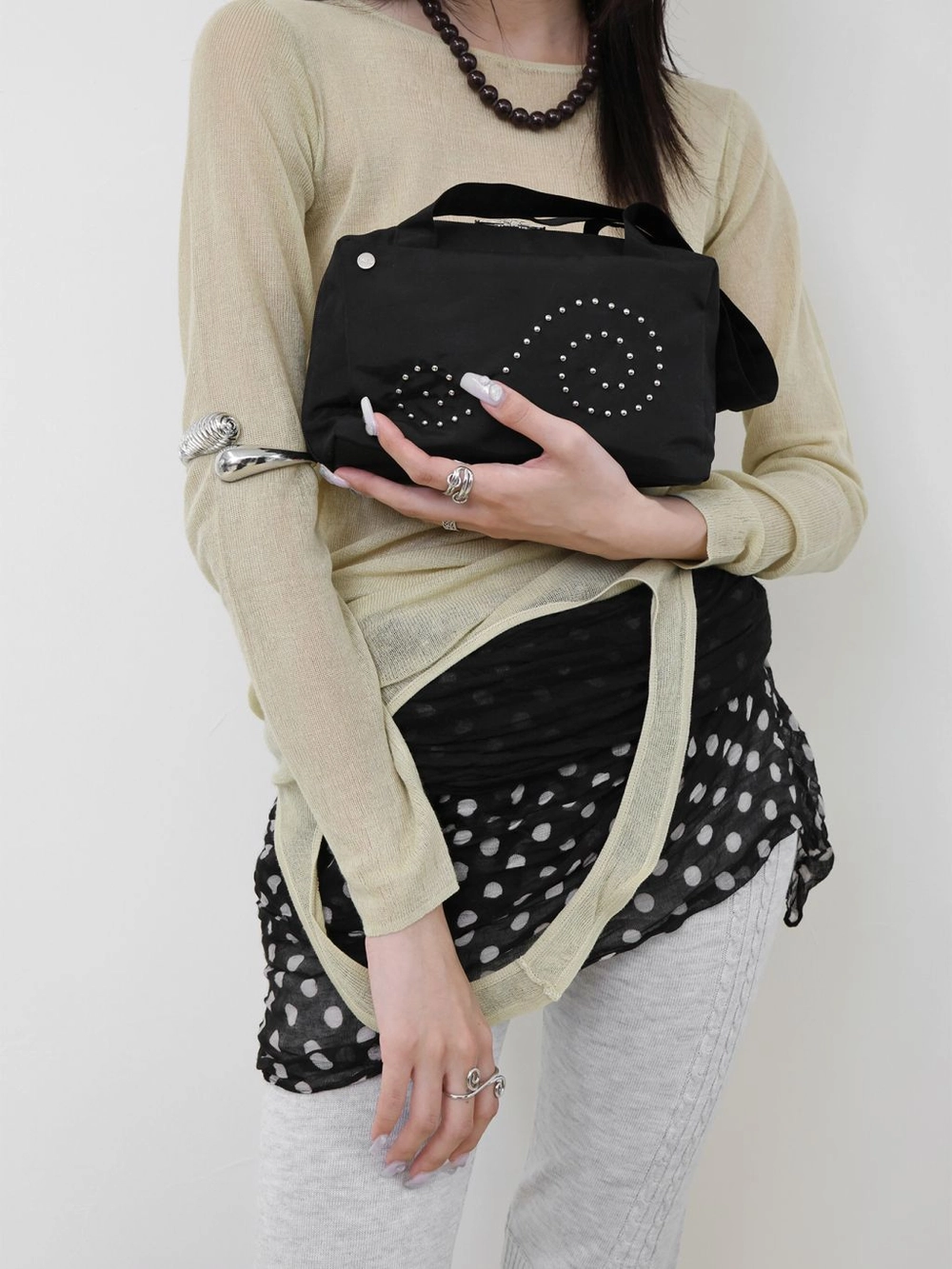 - 스파이럴 스터드 디테일의 컴팩트 백 - 음각 로고 리벳 디테일 - 가볍고 생활방수가 가능한 폴리 원단으로 제작 - 일상 소지품을 담기 좋은 컴팩트한 사이즈 - 투웨이 지퍼와 풀오픈 구조로 내부를 한눈에 확인할 수 있어 사용에 편리 - 숄더 & 토트 겸용 스트랩으로 다양한 스타일링 연출 |