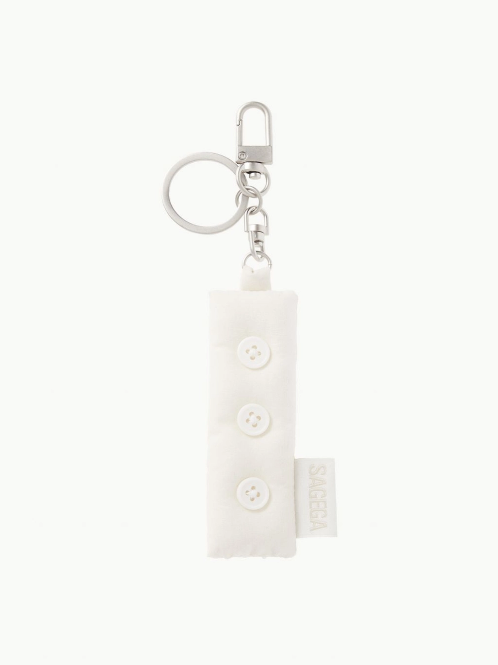 - 볼륨감 있는 쿠션 텍스쳐의 버튼 쿠션 키링 - 키링뿐만 아니라 가방 참으로도 활용 가능 - 톤온톤 로고 라벨 ,단추 디테일 |