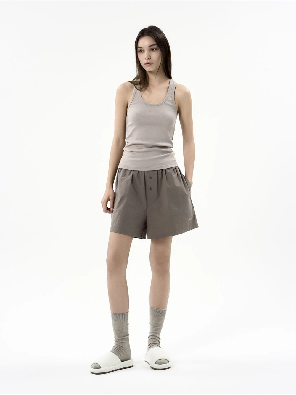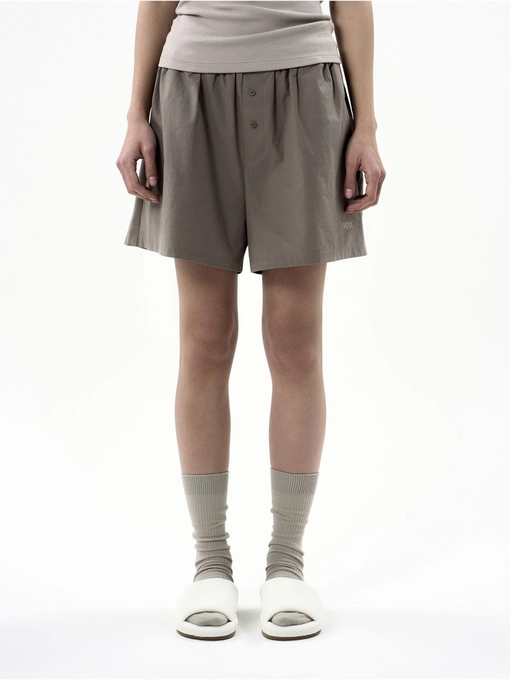 - 40수 고밀도 코튼 소재의 시즌리스 파자마 쇼츠 - 부드럽고 드라이한 터치감, 쾌적한 착용감 - 넉넉하고 여유로운 실루엣 - 프리사이즈 허리 밴딩으로 편안한 착용감 - 앞면 포켓의 톤온톤 로고 라벨 디테일 |