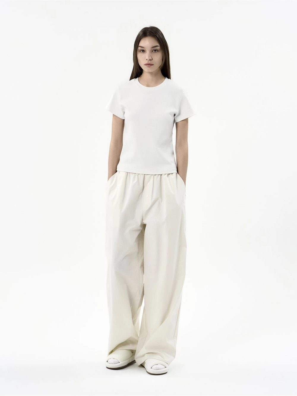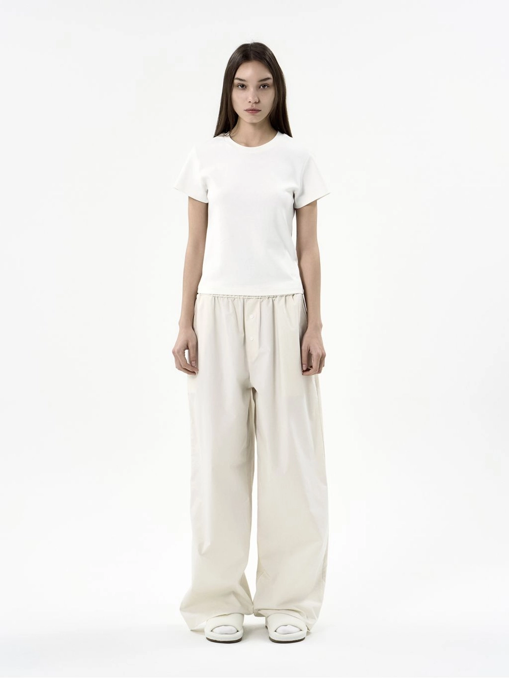 - 세미 슬림핏 하프 슬리브티 - 단독착용 및 레이어드하기 좋은 베이직한 디자인 - 사계절 활용 가능한 적당한 두께감 - 코튼 스판 혼방 소재로 소프트한 터치감과 높은 신축성의 편안한 착용감 - 하단의 톤온톤 로고 라벨 디테일 |